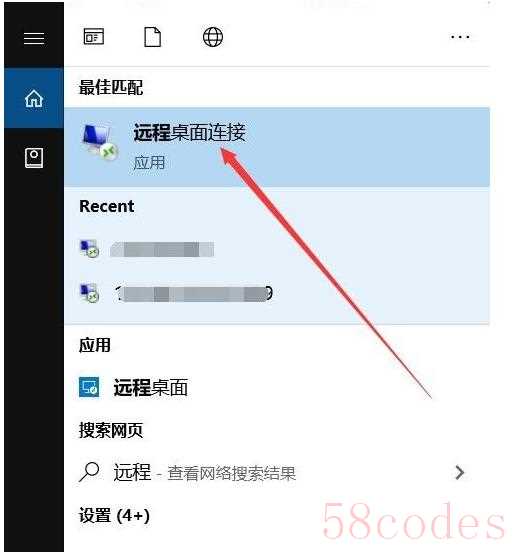 4.然后会出现搜索框,直接搜索“远程”,然后就会出现“远程桌面连接”的选项,点击进入即可,如图所示。