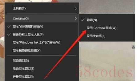 2.然后选择弹出菜单中的“显示Cortana图标”,如图所示。