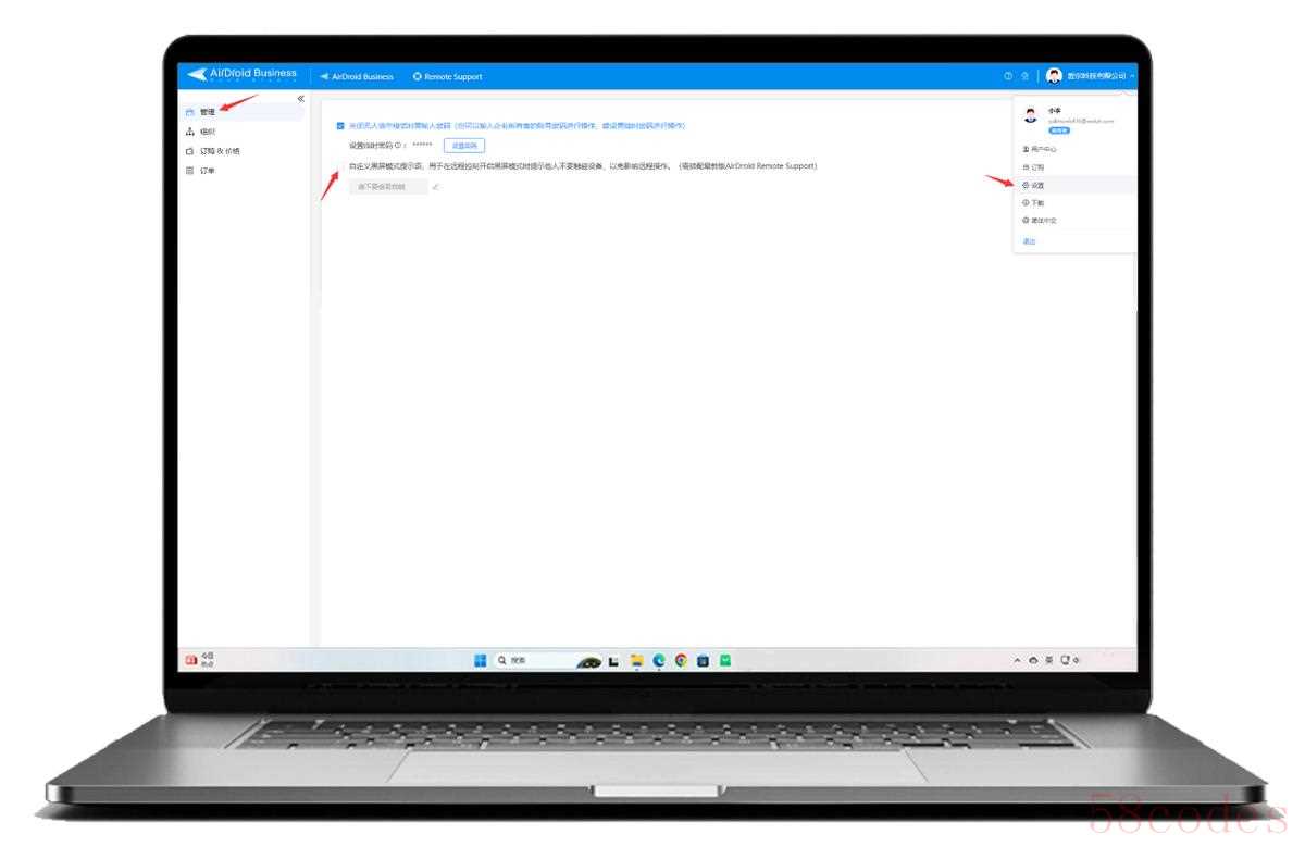 黑屏模式在被控端电脑的屏幕会留下一句提示词,这个提示词可以自由更改。进入AirDroid Business网页版,登录账号后,点击【管理】,勾选【自定义黑屏模式提示语】,然后就可以更改文本。