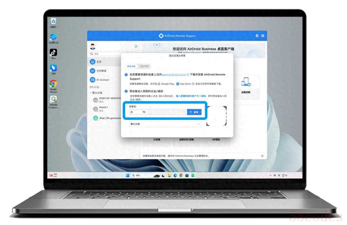 步骤一,在控制端电脑安装AirDroid Business,注册并打开软件,点击左侧栏的加号,然后找到【部署码】。