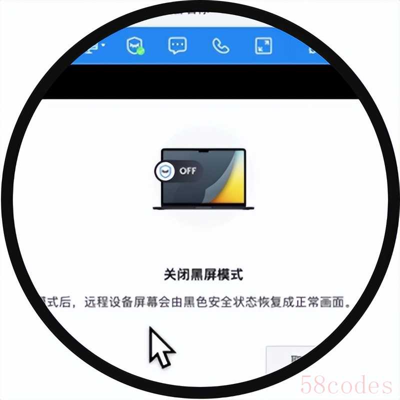 【黑屏模式】的按钮就在AirDroid Business界面内,点击顶部中间第二个按钮,当这个按钮显示一个绿色的小勾就表明被控端电脑已经黑屏。