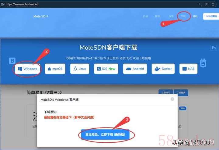 下载MoleSDN Windows客户端 随后登录客户端