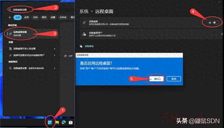 win11 开始菜单搜索 ‘远程桌面设置’启动远程桌面