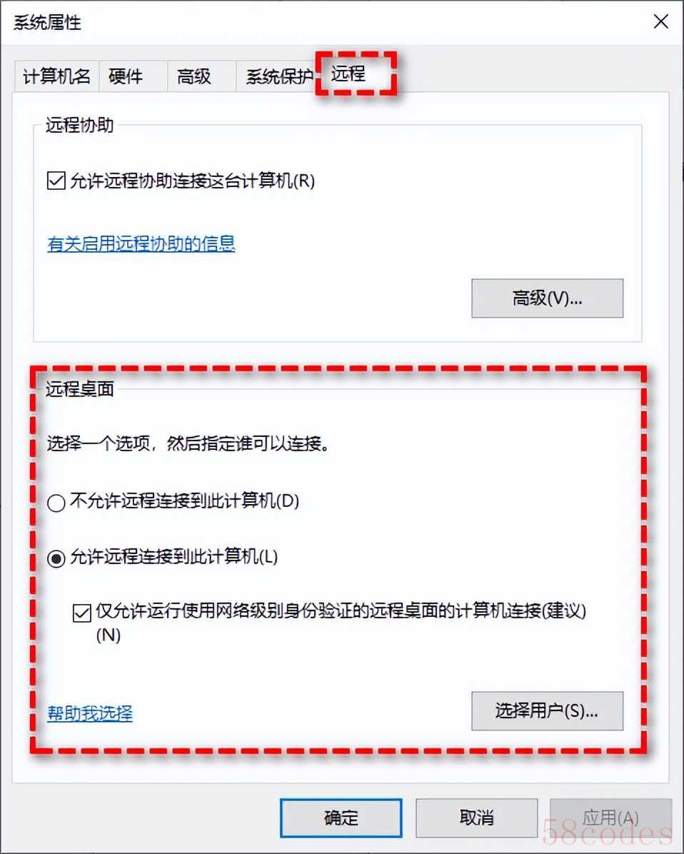 "(重要)" 建议点击“选择用户...”按钮,确保你想要允许访问的用户账户(通常是你的用户名)在此列表中。如果列表为空,点击“添加...”,输入用户名,点击“检查名称”确保正确,然后点击“确定”。只添加需要访问的用户可以增加安全性。