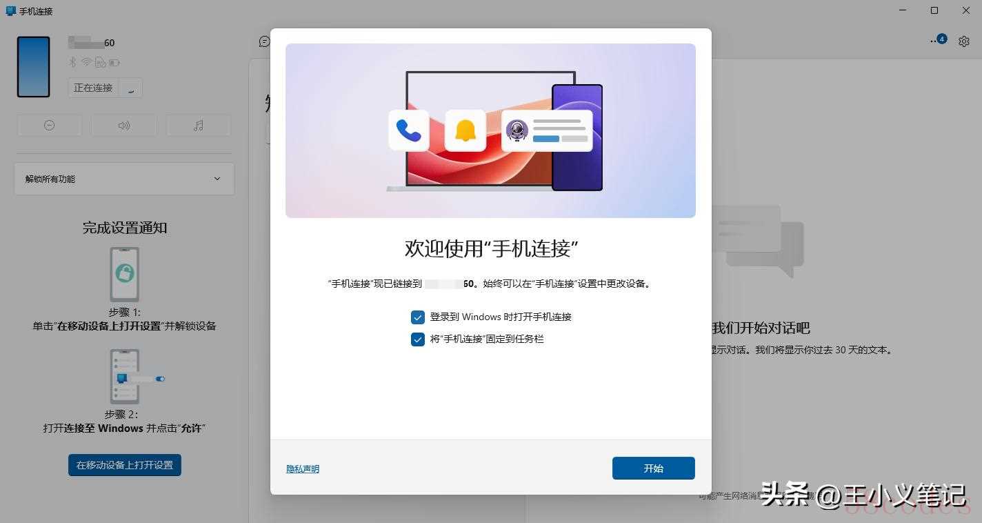 之前写过华为多屏协同和小米妙享的工具安装教程,详细可以参考「王小义笔记」历史推文。现在Windows 10的「手机连接」功能能轻松实现传输文件、同步照片,直接在电脑上查看手机通知!虽然和整个屏幕协同的功能有一些差距,但是电话接打,短信发送与接收,通知信息查看,相片移动到电脑这些功能都能用,再也不用解锁手机查看验证码了,跟着以下步骤操作,5分钟搞定!