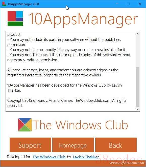 想学到更多的Windows技巧和知识吗?通过10AppsManager软件底部的The Windows Club或About图标链接,可以方便地进入Windows俱乐部网站,获取更多的Windows软件工具或Windows技巧(图4)。