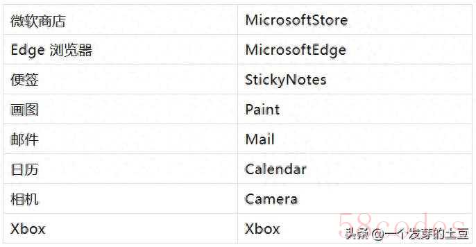 不同的应用需要替换成相应的名称标识。下面是常见预装应用与对应的名称标识