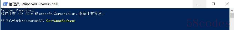 2、在命令行窗口输入:Get -AppxPackage,回车