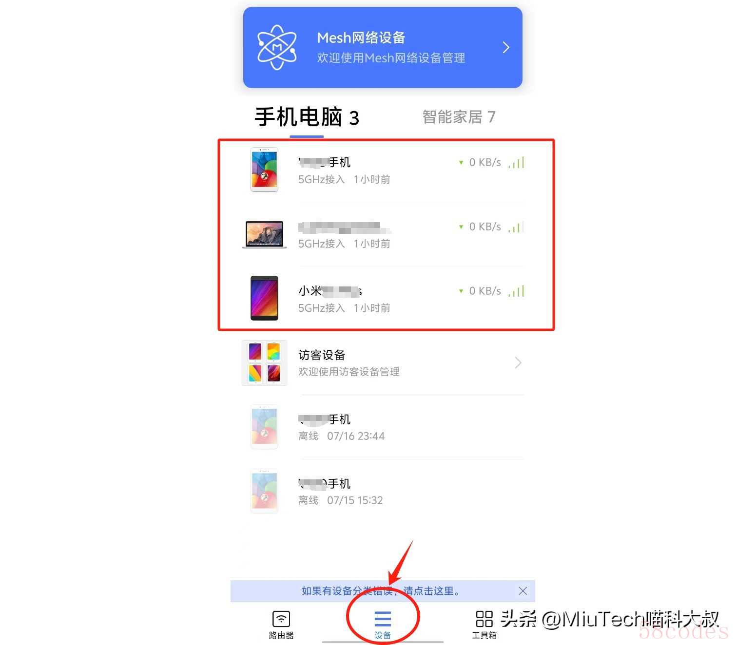 然后,你可以在脱离这个WiFi环境下尝试对路由器进行管理,比如把WiFi关闭,用手机流量来操作。选择设备,可以查看并管理当前已连接的设备;