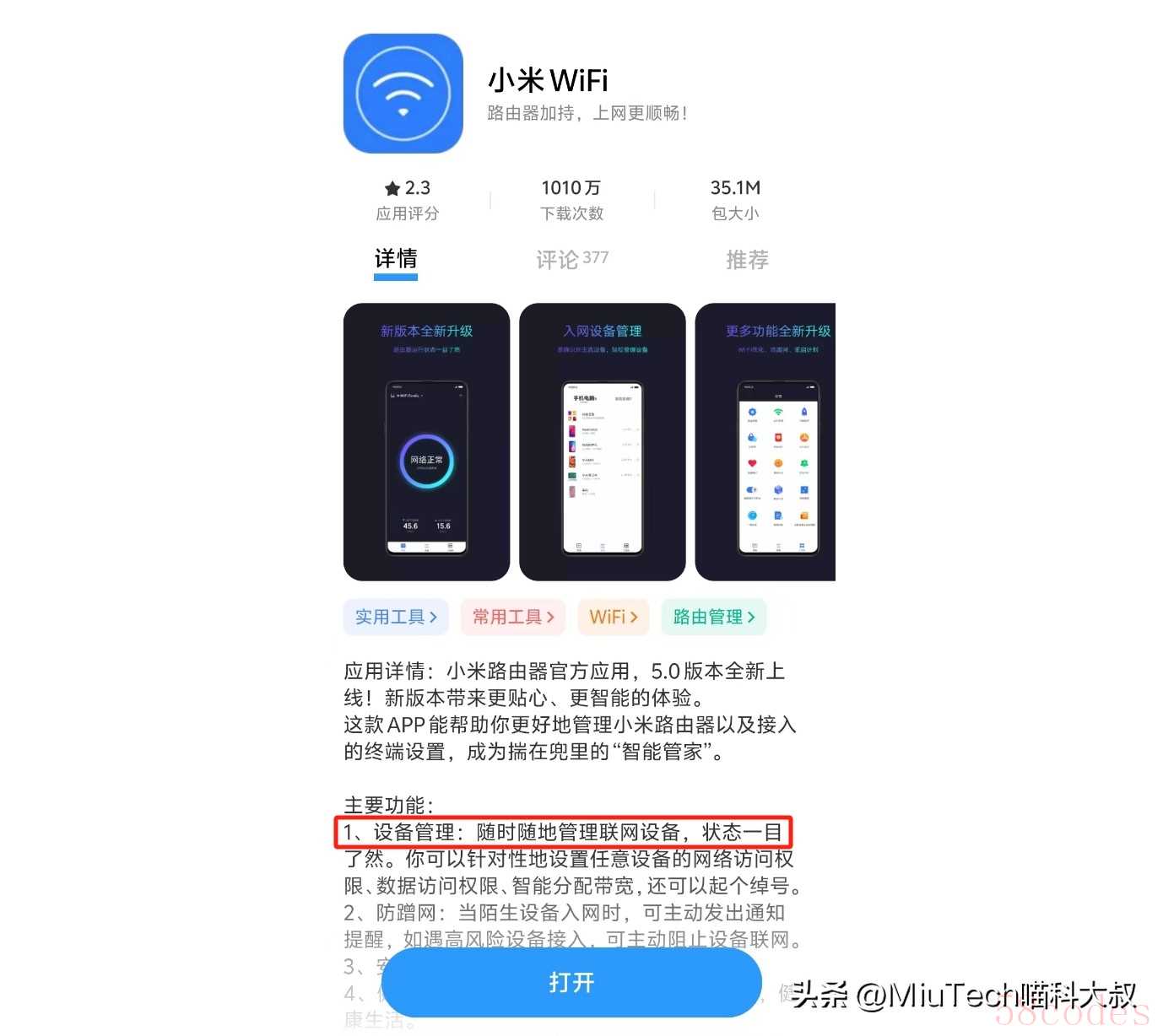 首先,在手机的应用商店查找“小米WiFi”: