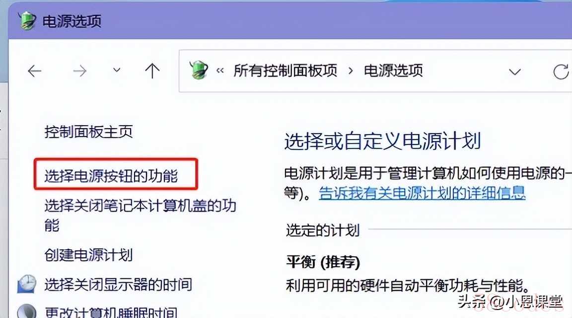 3、来到电源选项页面后,点击在侧栏的【选择电源按钮的功能】 ;