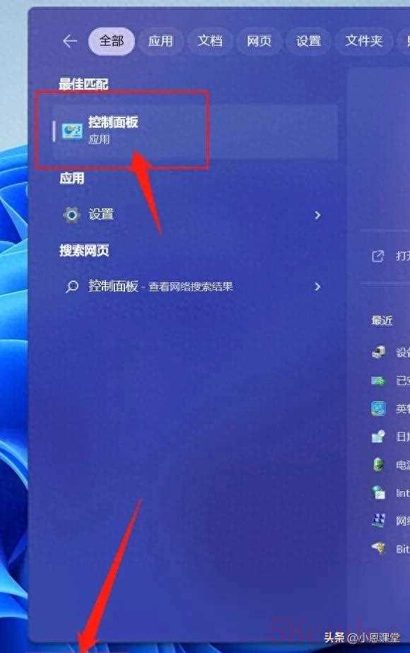 1、点击底部任务栏中的搜索按钮,接着搜索【控制面板】,然后点击进入即可,