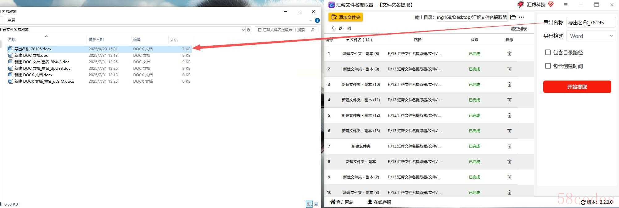 方法二:汇帮文件名提取器(一键导出,超省心)