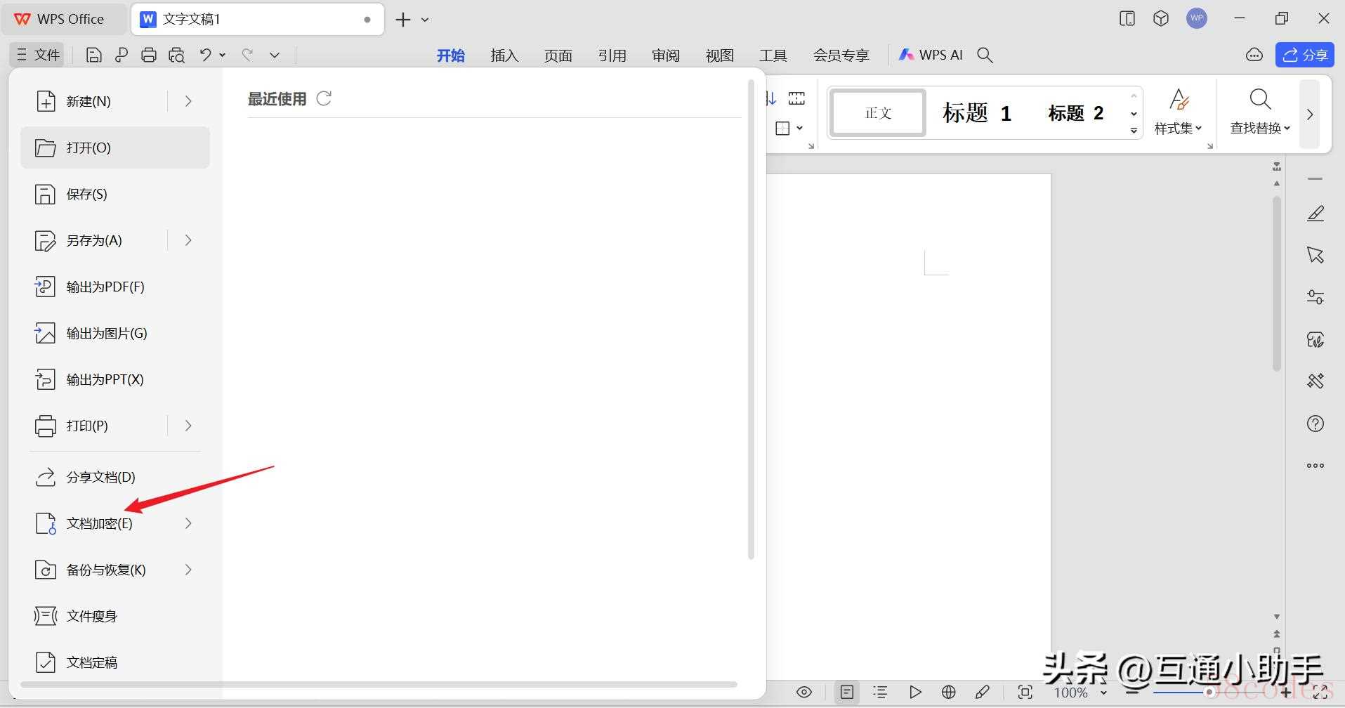 2、进入文件下拉界面,点击“文档加密”。