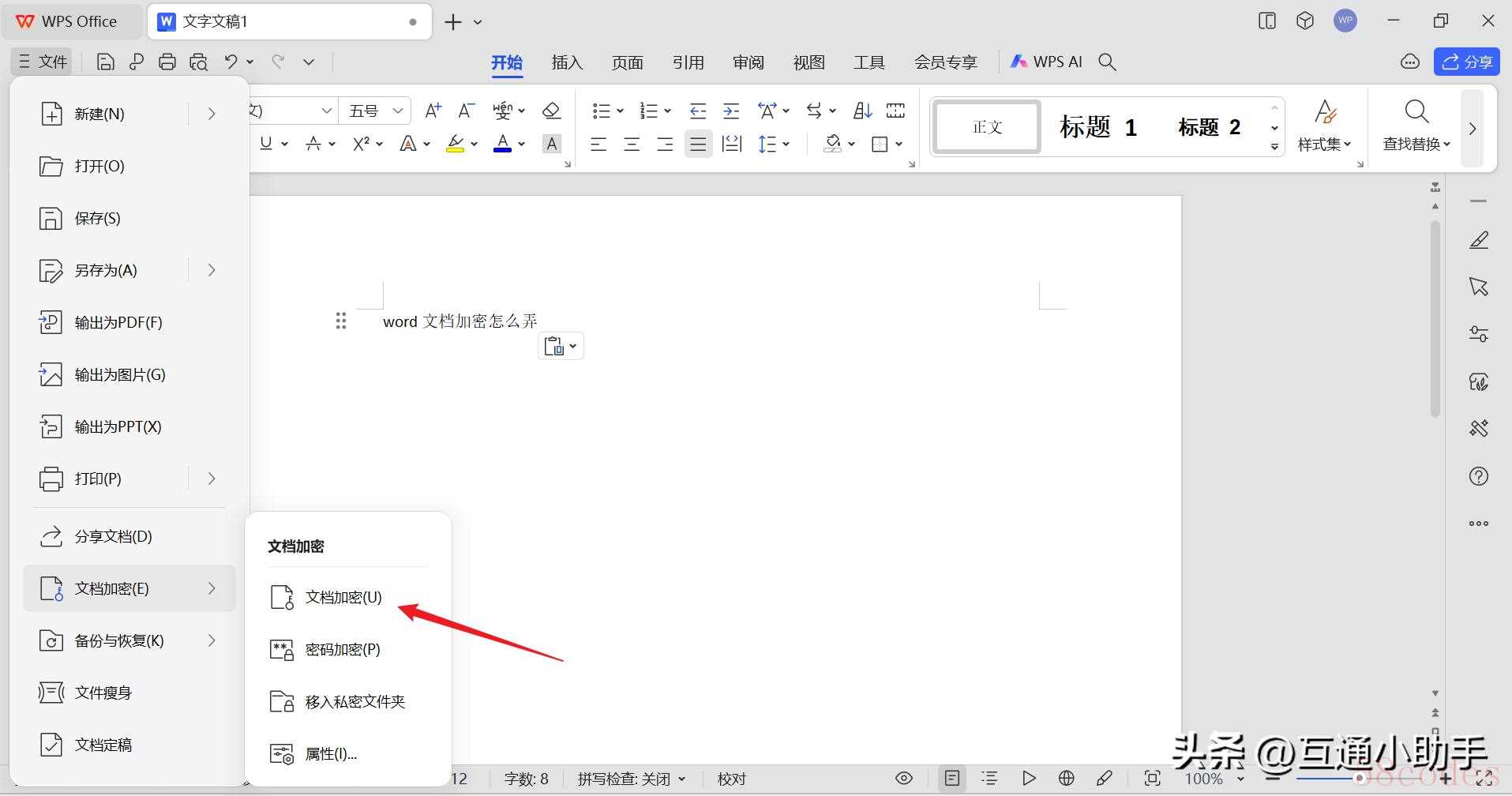 5. 选择“加密文档”选项:在弹出的菜单中,选择“加密文档”选项。