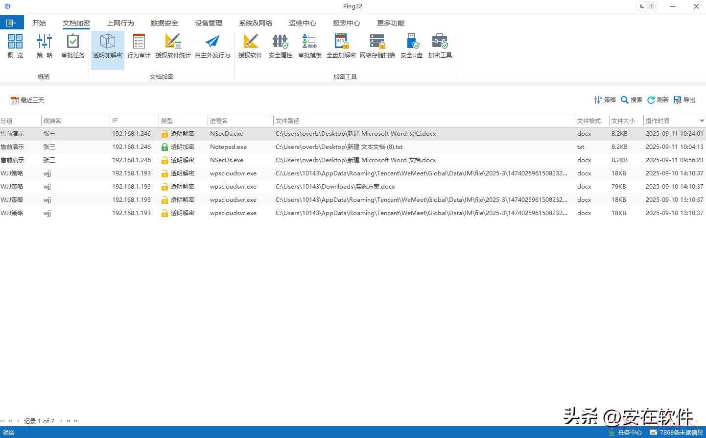 Ping32 是一款集文件加密、权限控制与行为审计于一体的终端数据防泄漏产品。它采用驱动层透明加密技术,对指定文件自动加密,不影响员工正常办公。