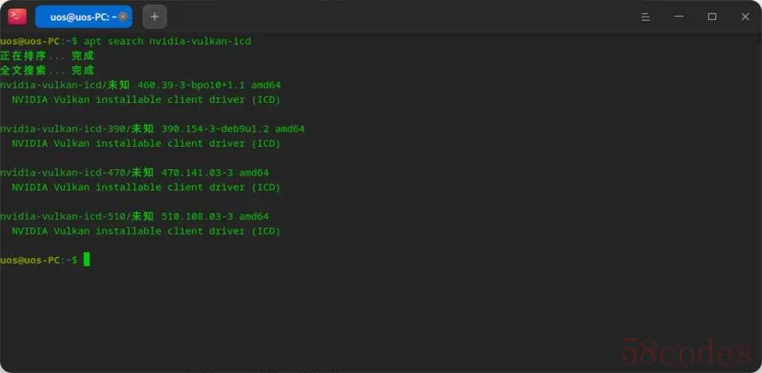 Nvidia 用户中查询系统 Vulkan 系统版本:apt search nvidia-vulkan-icd
