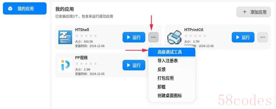 点击应用右侧的“…”按钮,打开“高级调试工具”。