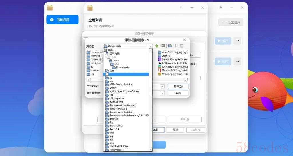- 应用卸载器, 打开 wine 自带的应用卸载器(uninstall.exe);