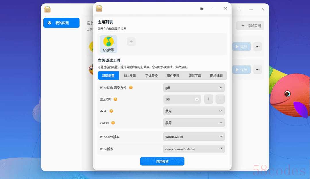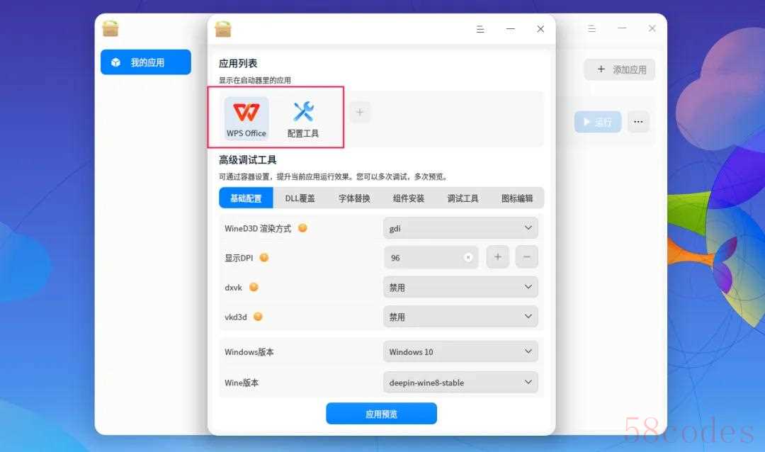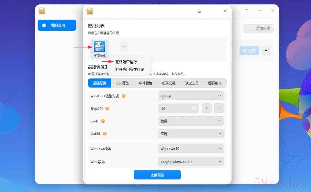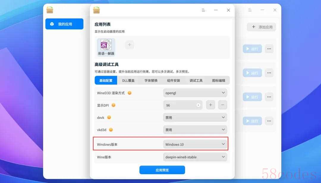 - wine配置,打开 wine 自带的容器配置工具(winecfg.exe);