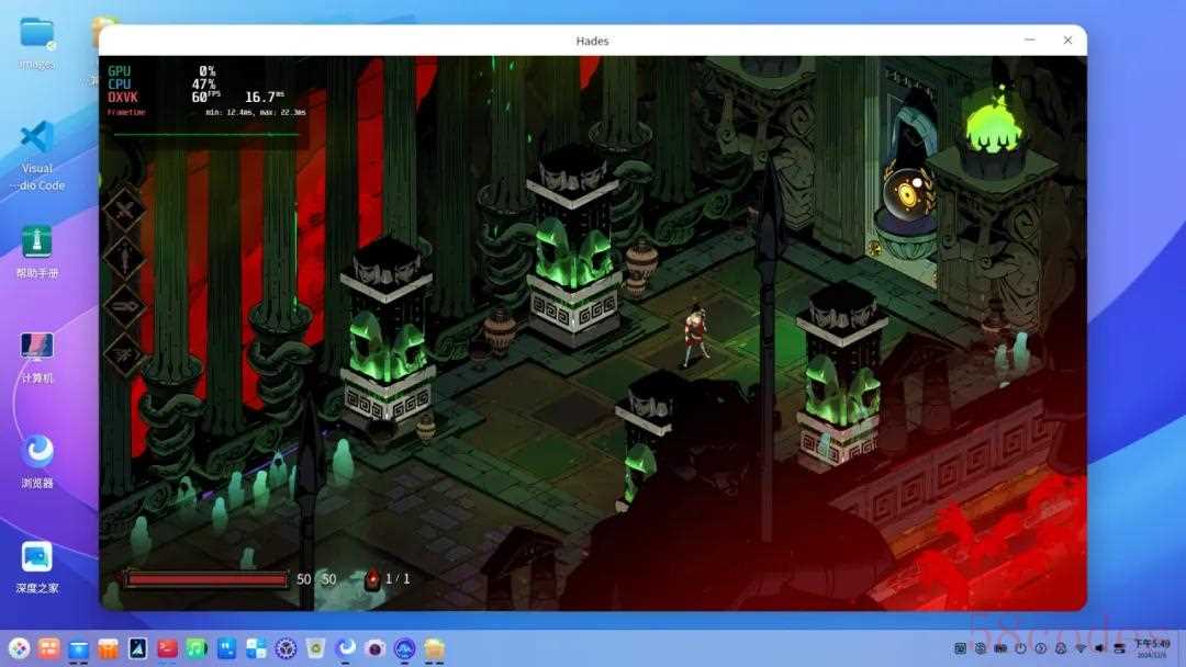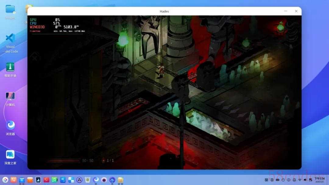 可以看下使用 dxvk 前后的帧率对比。不使用 dxvk 的游戏处于不可玩的状态(0帧、渲染一帧需要6秒):