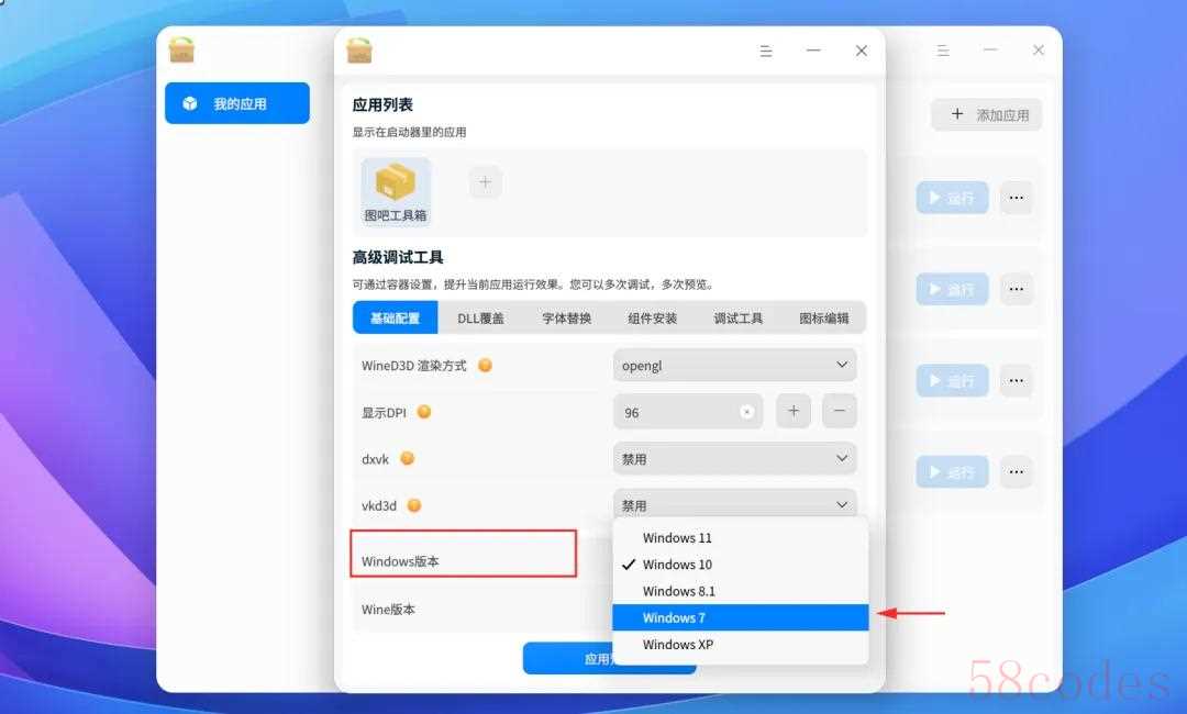 应用在不同 Windows 版本下的会出现不同的行为。有的应用在高版本的 Windows 上,使用兼容引擎无法启动,此时可以将 Windows 版本设置成 Windows 7 或者更低版本来解决。