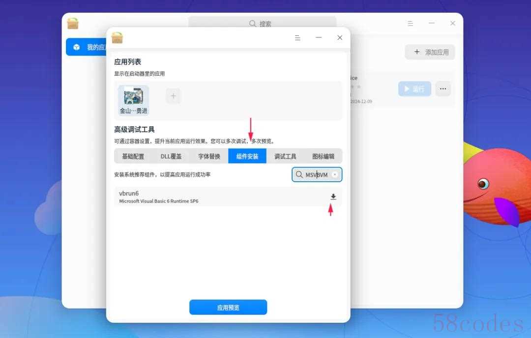 应用可能缺多个 dll,在补完一个 dll 之后再次运行,又报一样的错误,只不过 dll 的名字不一样。一些小的应用可以在“组件安装”补完 dll 之后运行: