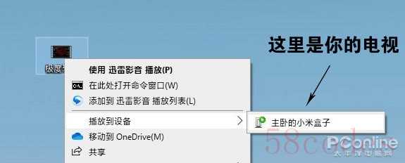 打开“此电脑”,定位你的影片,然后右击选择“播放到设备”,如果你的电视机(机顶盒)不是很老的话,通常都能找到你的电视。