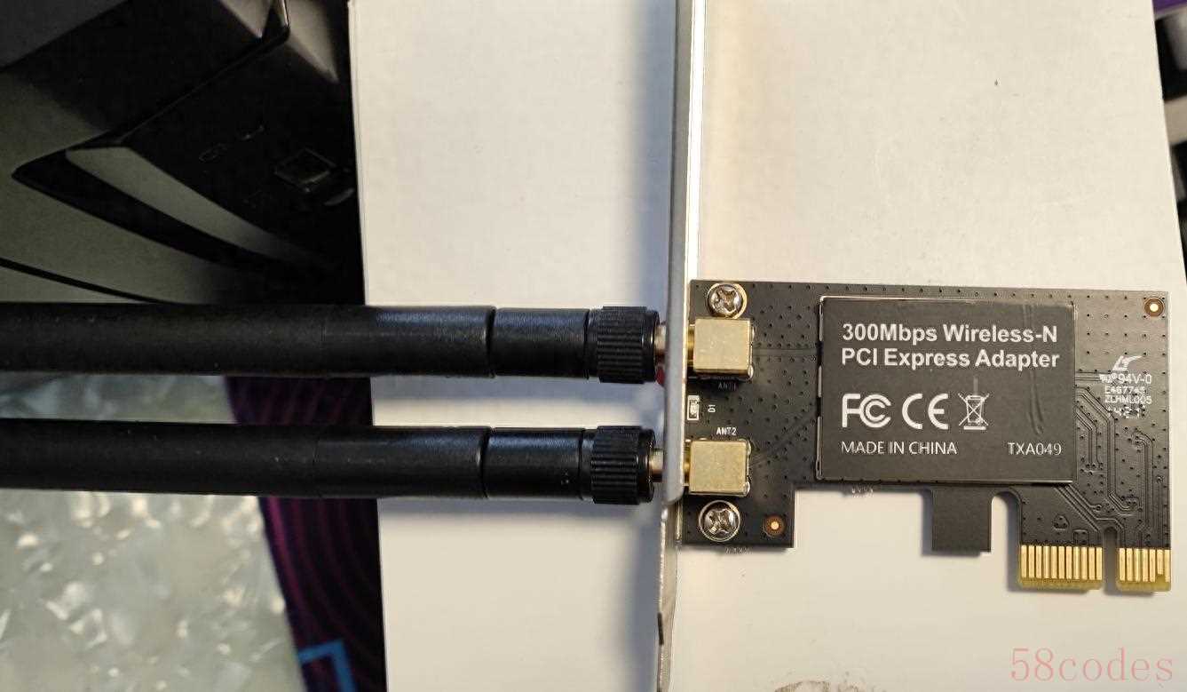 考虑到这是一台老电脑,我们不需要追求最新的WiFi6网卡,而是选择一个性价比高的无线网卡即可。例如,300Mbps Wireless-N PCI Express Adapter TXA049就是一个不错的选择,主要是老古董网卡便宜。