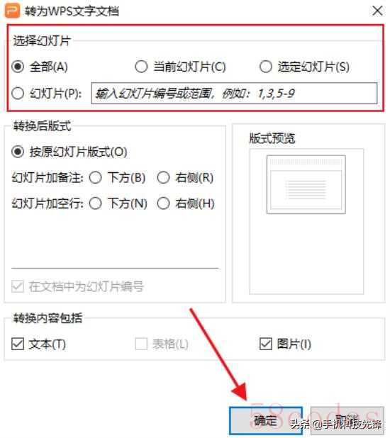 第二步:之后,我们可以选择将PPT转换成文档的范围,完成之后点击【确定】即可。转换成功之后就可以在桌面找到转换成功之后的文档了,十分方便。