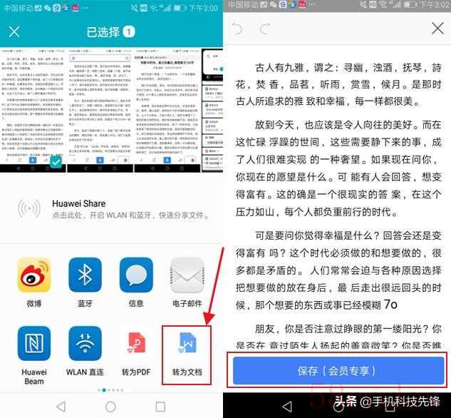 第二步:找到【转为文档】功能,然后添加需要转换的图片,即可提取图片当中的文字。扫描完成之后,我们可以直接保存了。是不是非常方便呢?