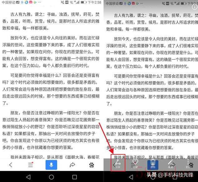 第一步:把文章截屏保存在相册当中点击【分享】按钮。