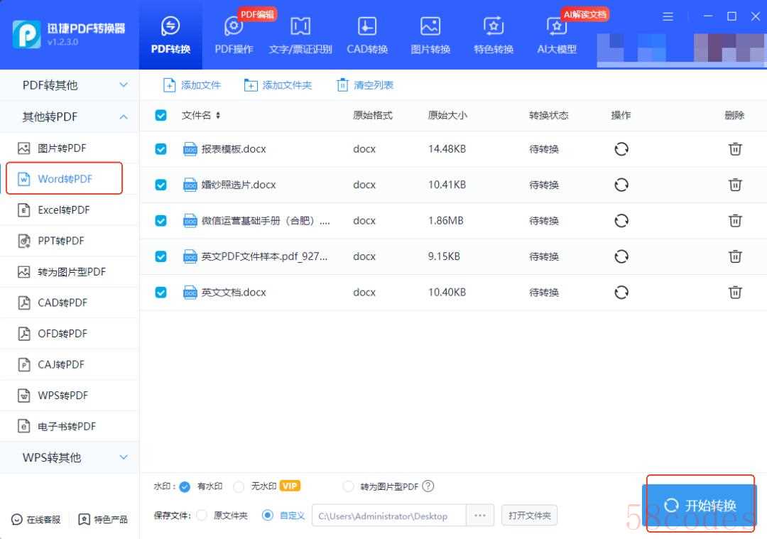 最后设置保存文件夹、点击【开始转换】按钮,系统就能自动转换文件格式~