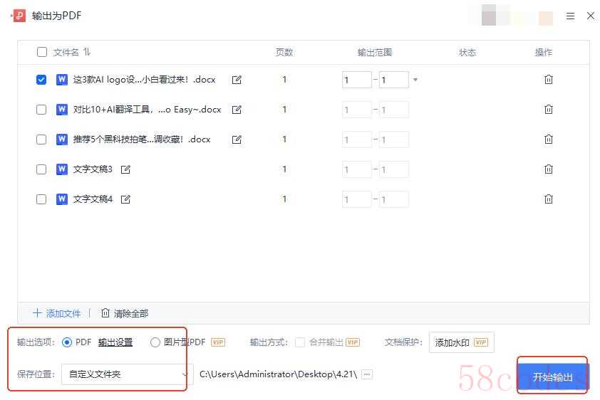 接着在弹窗页面中,设置输出格式、保存文件夹,点击【开始输出】按钮,就能完成文件转换~