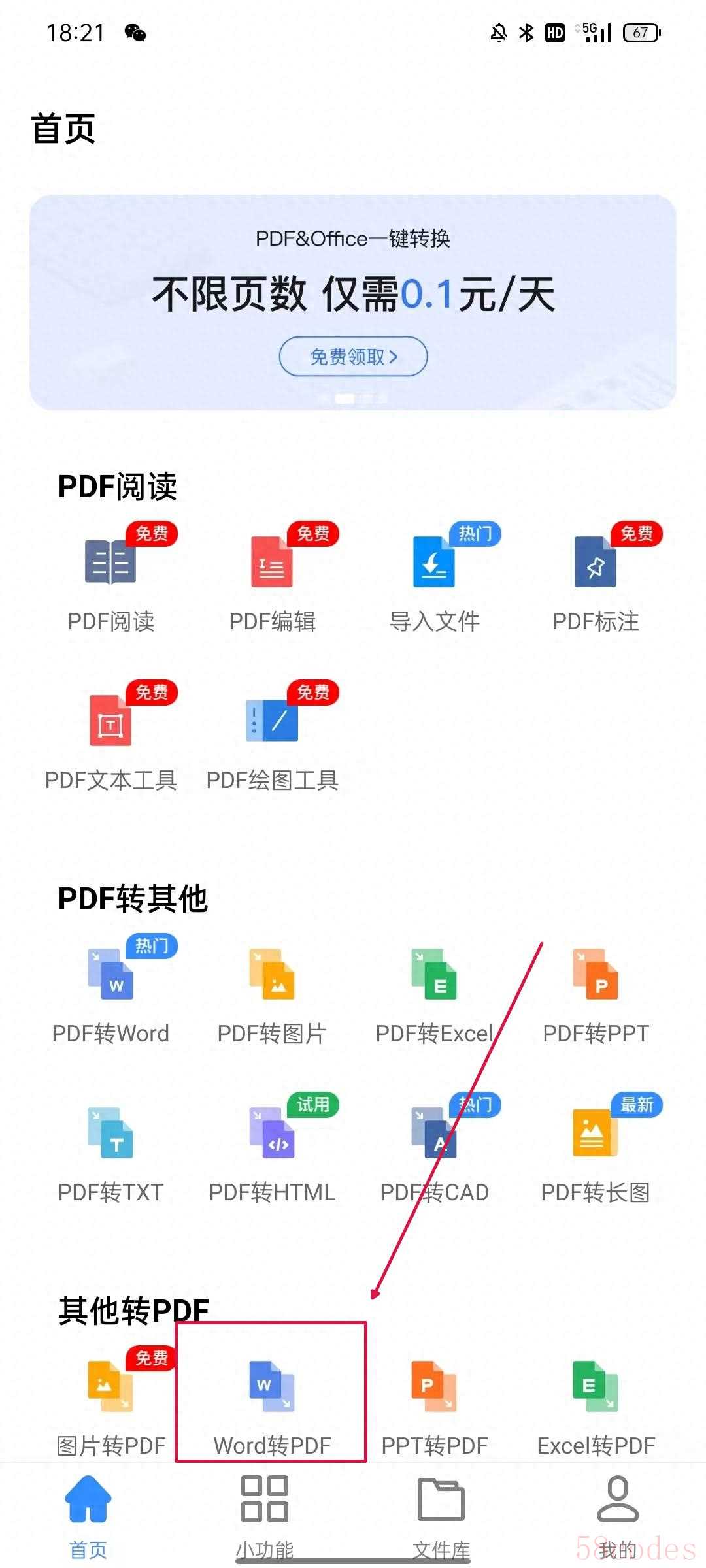 打开软件,在首页的‘其他转PDF’板块中,选择【word转PDF】功能;