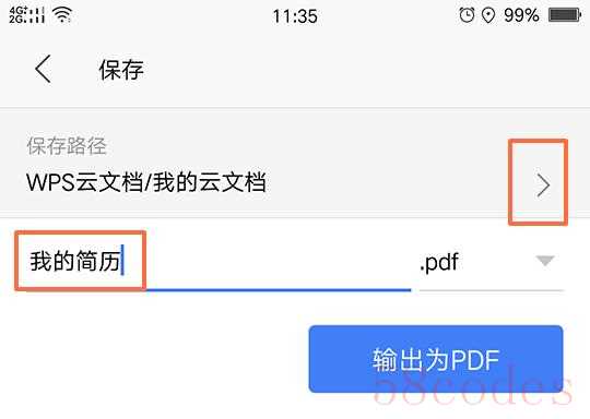 安卓手机的wps默认保存在云文档里,使用微信或邮件发送时,是不能选择云文档的。所以建议保存在手机,这样方便在手机文件里找到,微信发送文件的时候也方便。点击"保存路径"右侧的小箭头,然后选择"本地"-"手机",再点击右下角"输出为PDF"按钮。