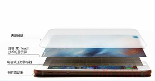 苹果6plus屏幕分为三层:1.外屏上的钢化玻璃层。2.具有3D TOUCH重力感应液晶层。3.电容式压力传感层。