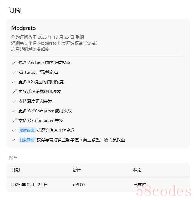说真的,没想到Kimi还能记得我们第一波的打赏用户,这真的太走心了吧!所以我毫不犹豫就冲了他们家的最高档Moderato会员(可以使用20次「OK computer」),还赠送了5个月的会员。