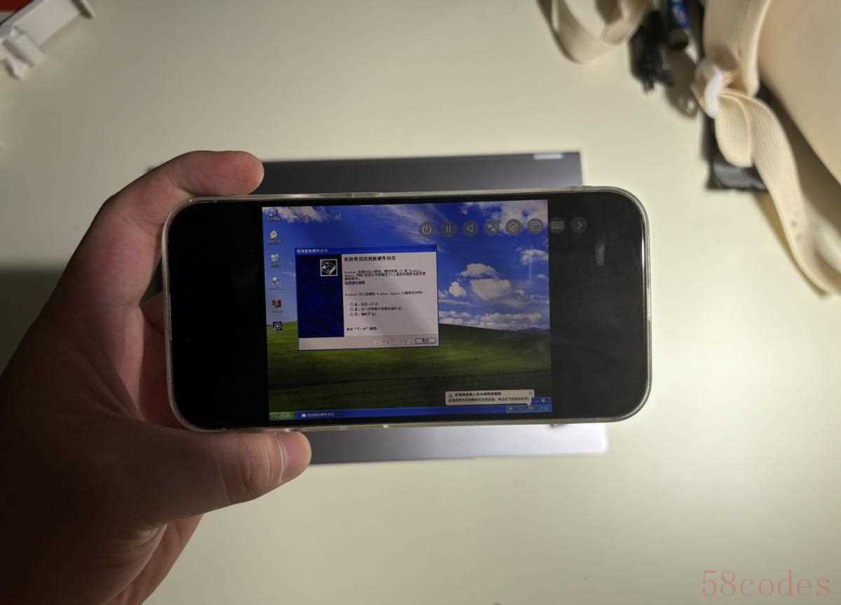 顺利进入XP系统,我这里没用外接键盘、鼠标,而是全程触屏操控鼠标来操作。滑动屏幕,就是移动鼠标轨迹;单击屏幕,就是单击鼠标;双指单机屏幕,就是鼠标右键;长按屏幕,就是按住拖拽。