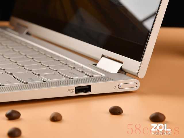 再来看看YOGA C740这边,它采用的是YOGA最为经典的360°转轴设计,不支持单手开合。现在看来这个设计是有利于压低整机制造成本的,但笔者还是认为如果能采用上一代的表链式转轴会更加有吸引力。