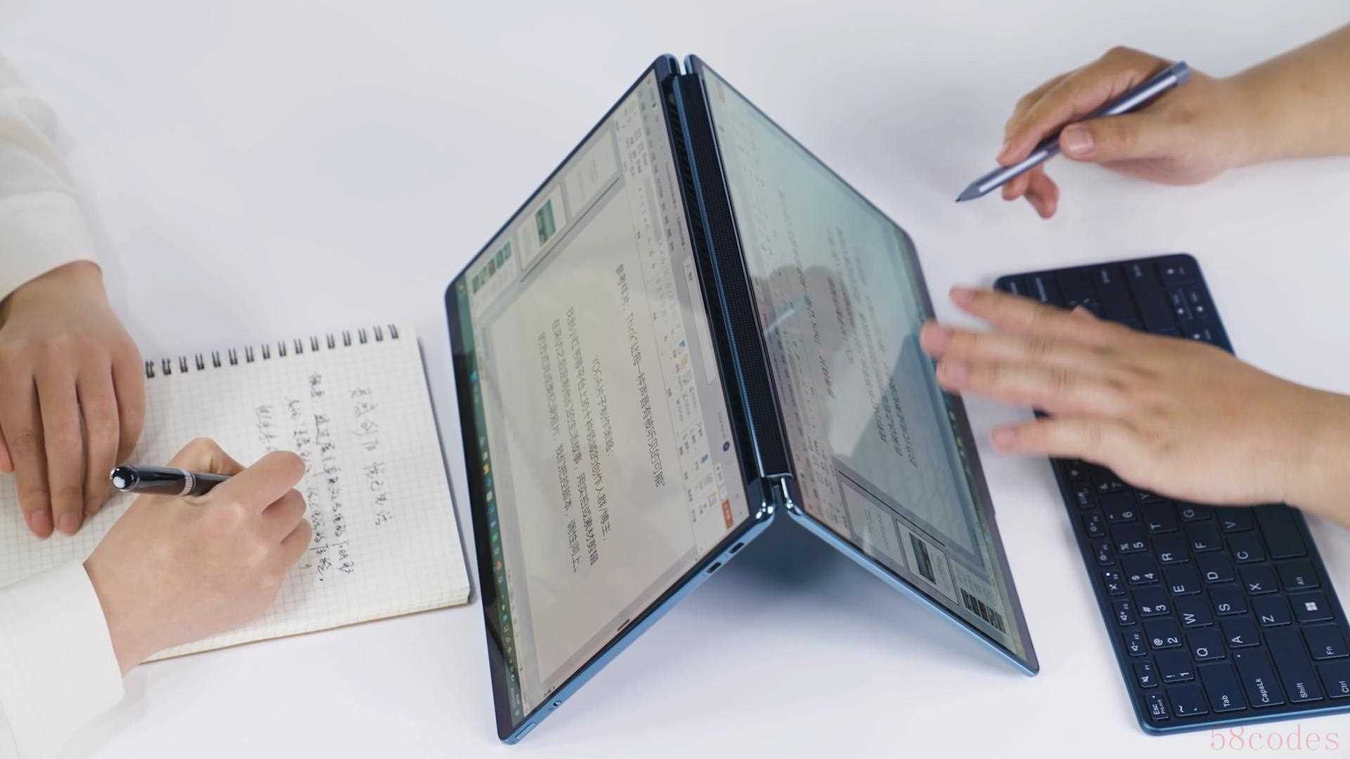 更加创新的,是这种形态可以带来的全新人机交互及使用方式。 你可以在上屏开网页查资料,在下屏写文档,在上屏开视频会议,在下屏做记录,看消息等等。根据你的想象力和使用需求,这两块屏幕可以玩出非常多的花样。