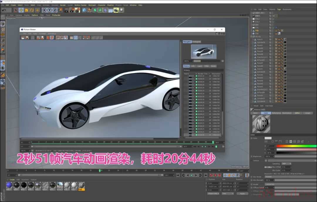 ▲我们用Cinebench的“本体”——Cinema 4D进行汽车动画的渲染,2秒,每秒25帧,加上首帧共计51帧,总耗时20分44秒,算是不错的表现。相应的,87W功率释放的i7 12700H比它少耗时19%,但功率却高出它24%,平台整体功耗更是高出32%。说简单点就是:R7 6800H平台是专业应用中的“节能低热选择”。
