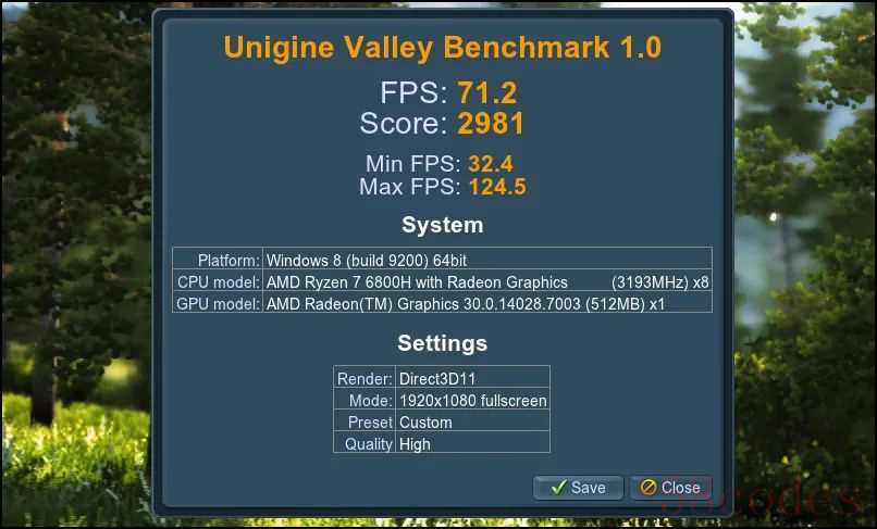▲R7 6800H真正的价值是其强悍的Radeon 680M集显,性能相对于上一代Radeon Graphics集显提升了120%以上(3DMark得分,Radeon Graphics只有1100分左右,Radeon 680M高达2450分),在集显中鹤立鸡群。而游戏3D性能甚至大幅超越了MX450(Unigine Valley测试,上一代Radeon Graphics仅能跑31fps;英特尔Iris Xe在43fps~55fps;MX450为62fps,而Radeon 680M轻松跑到了71fps)。