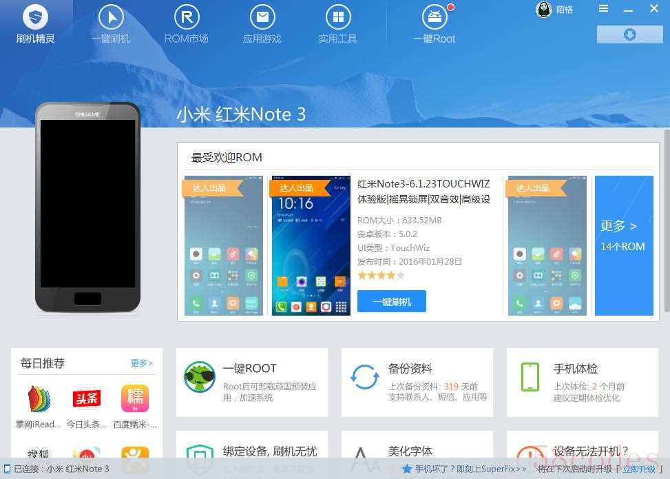 图1:刷机精灵V3.5.4发布,支持红米Note3等一键刷机