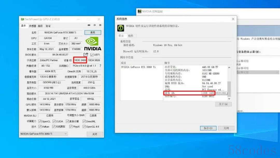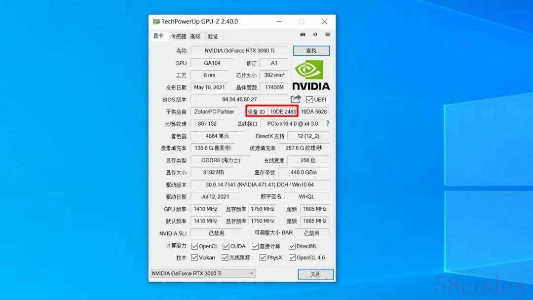 另外,除了GPU-Z可以看到设备ID外,通过NVIDIA驱动控制面板中的“系统信息”也能看到RTX 3060Ti LHR的设备ID,和GPU-Z完全相同。