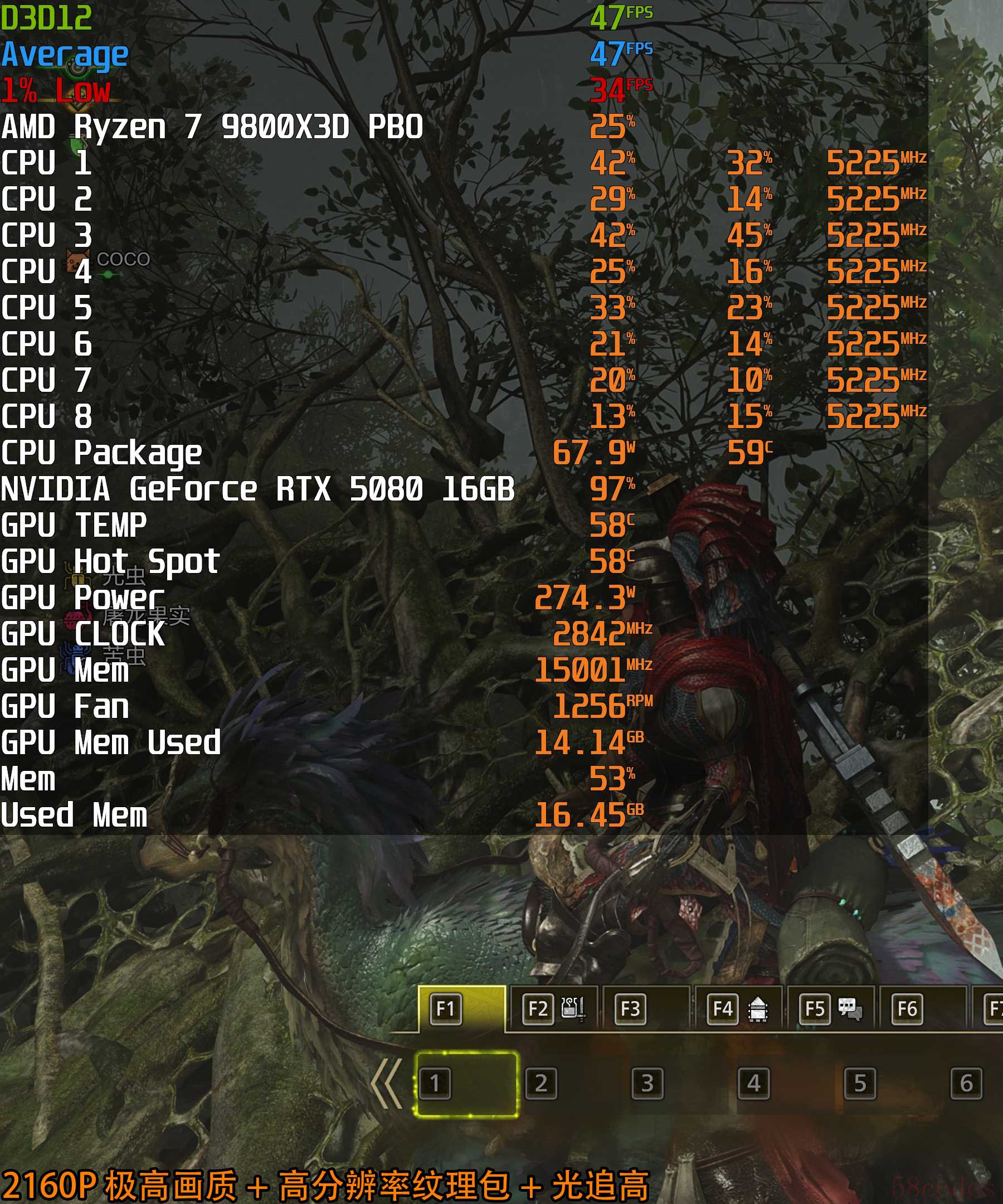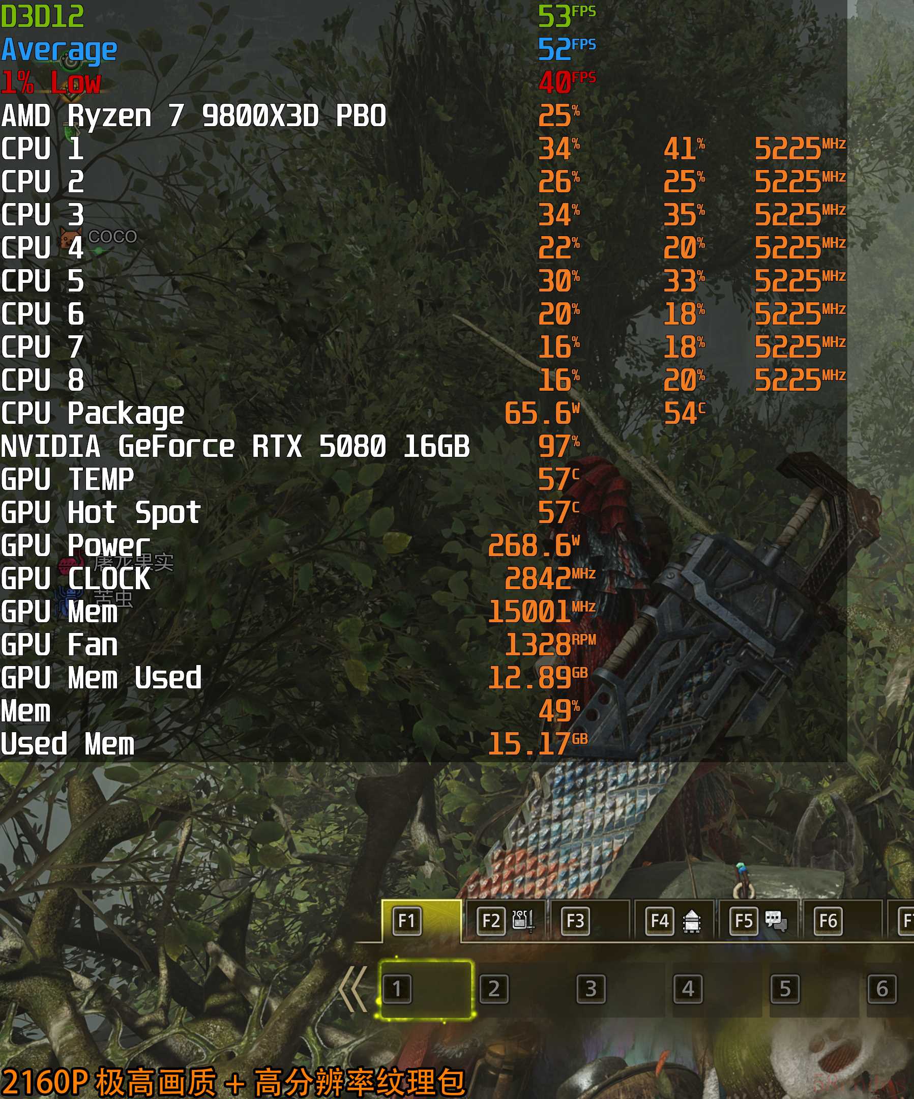 2160P极高画质+高分辨率纹理包+光追高(RTX 5080 16GB OSD监测)