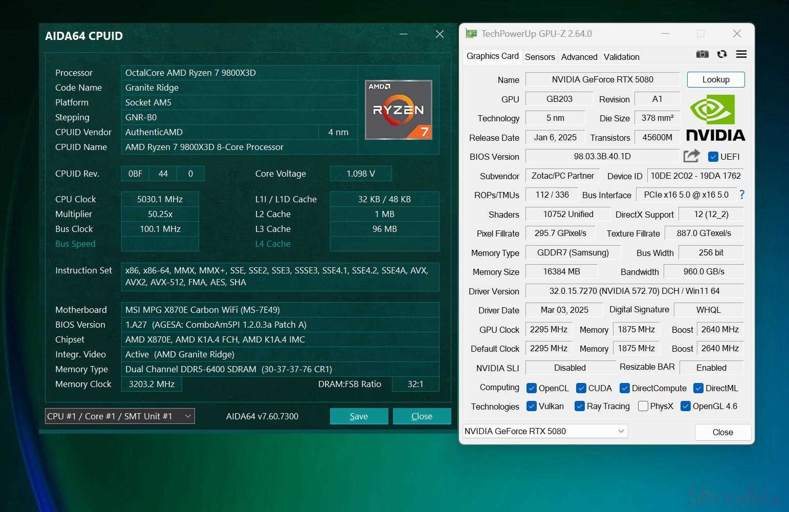 简单介绍一下本次测试的环境,锐龙7 9800X3D开启PBO技术便于发挥最大CPU性能,搭配内存是两根DDR5 6400C30 16GB*2(UCLK=MEMCLK同频)组成双通道,并在BIOS中开启Resizable BAR技术达到最大化显卡性能。