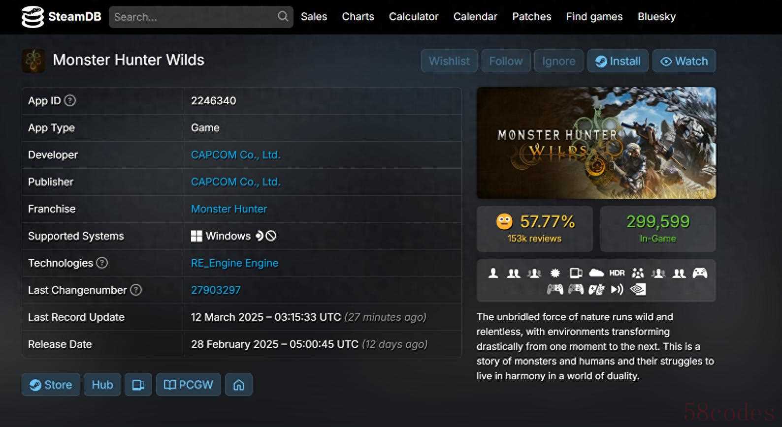 尽管《怪物猎人:荒野》优化并不好,但是其IP坐拥众多全球粉丝,前作《怪物猎人:崛起》上线已经过去四年之久,玩家对于新作的渴望被拉到最满,因此游戏发售三天后销量还是迅速突破800万份,STEAM周榜更是稳坐三连冠,本作新增的集中模式、双武器系统、生态互动等方面都进一步深掘了以狩猎怪物为核心的玩法。