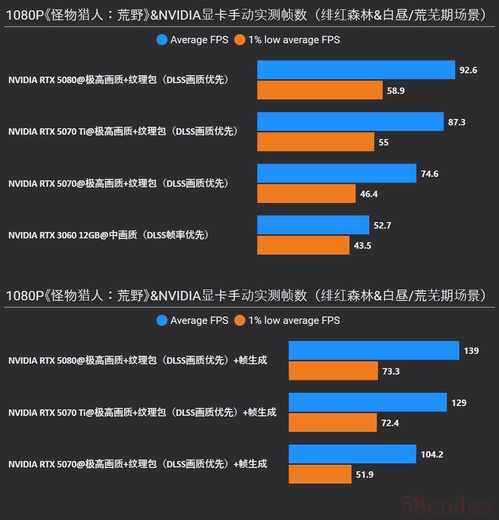 以下是基于《怪物猎人:荒野》在较新驱动(例如GeForce Game Ready Driver)和DLSS技术加持下,针对RTX 50系列(主要是5080/5070 Ti)和RTX 30系列(以3060为例)显卡的"预期"性能和画质表现分析,结合了理论规格和实际游戏场景的考量。请注意,这并非精确的“实测”数据,而是基于硬件规格、技术特性以及游戏发布后普遍反馈的综合评估。
