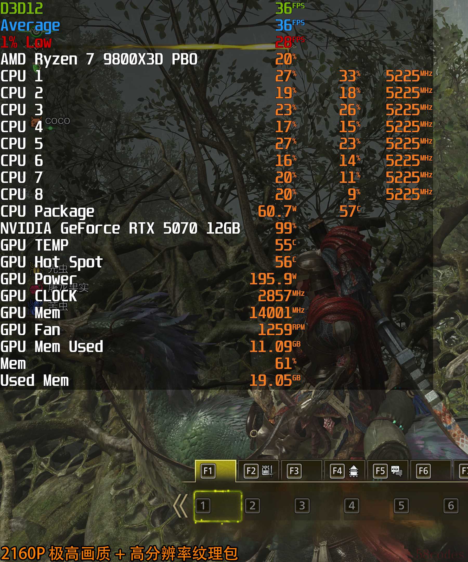 2160P极高画质+高分辨率纹理包(RTX 5070 12GB OSD监测)